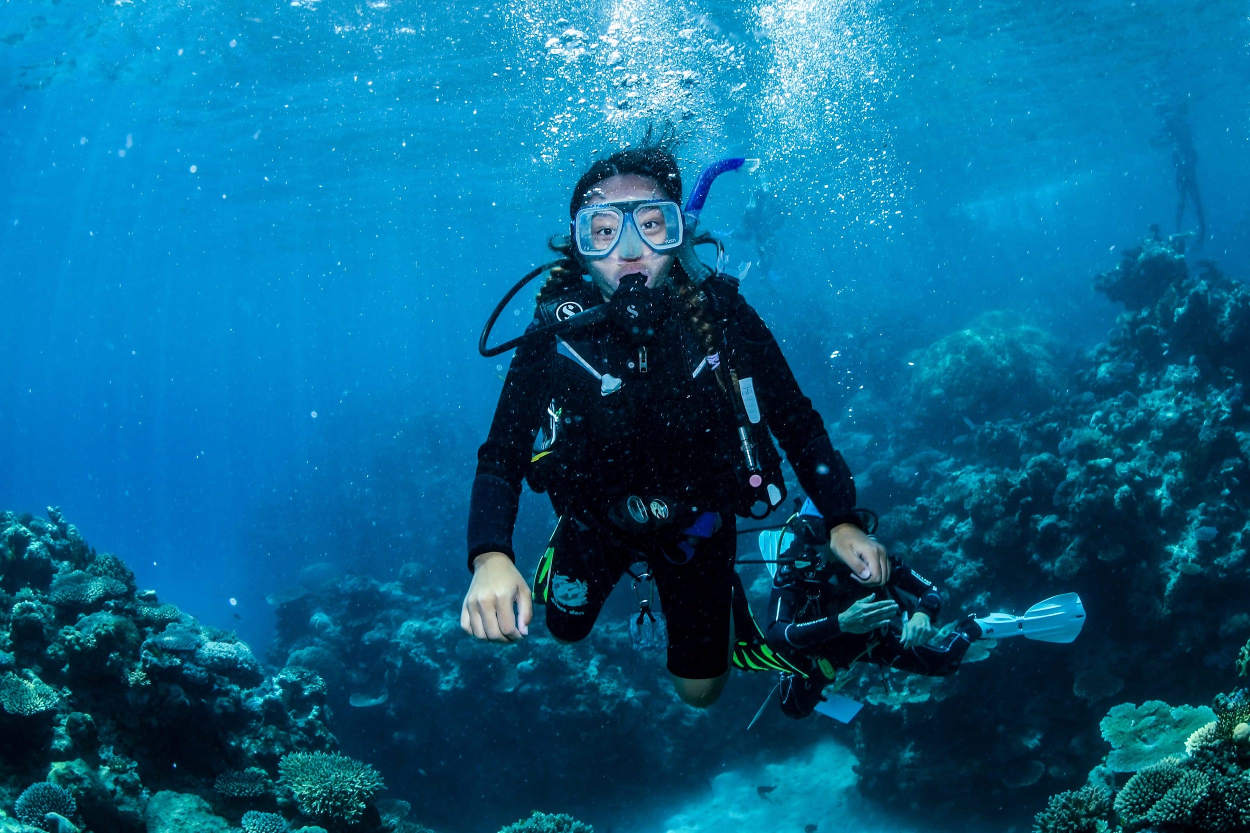在泳池學習並掌握了一些潛水的基本技巧後